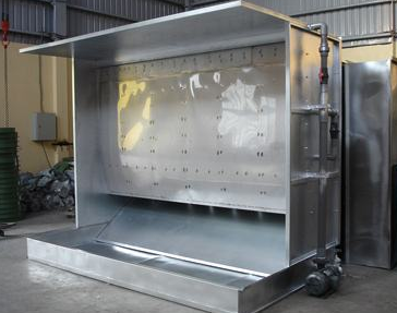 水帘柜特点是能把喷漆时剩余的漆粉直接打在水池里或水帘面上,而喷漆时产生的气味及未吸附的少量漆粉通过多层水帘幕过滤后经排风机排到喷漆房外,从而起到净化喷漆工作环境及保护人身健康的作用,又能使喷漆的工件表面增强光洁度。